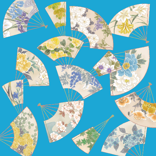 Wzór wachlarza (扇面) symbolizuje pomyślność, rozwój i szczęście w japońskiej kulturze, a kwiaty reprezentują cztery pory roku, dzięki czemu tkanina nadaje się do noszenia przez cały rok.
