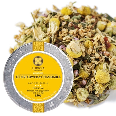 Ta herbata łączy popularny w Europie kwiat dzikiego bzu エルダーフラワー z rumiankiem niemieckim ジャーマンカモミール