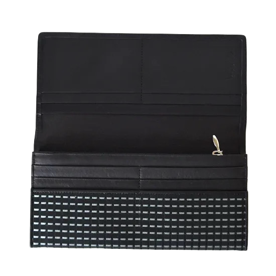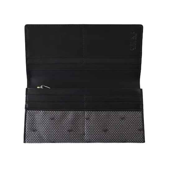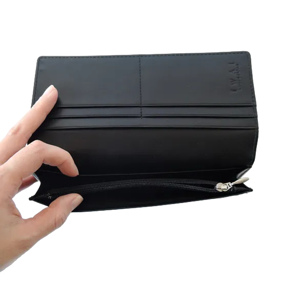 KOMON Długi portfel ze skóry naturalnej z prawdziwego jedwabiu (różne wzory)