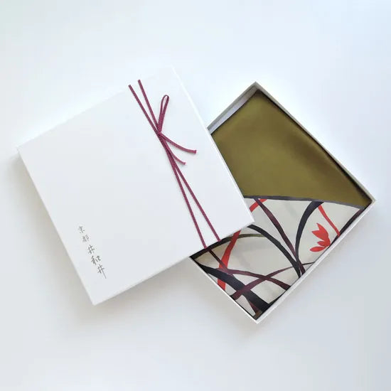 To elegancka i wyrafinowana tkanina na szal lub chustę, łącząca tradycyjną estetykę i jakość japońskiego jedwabiu oraz tradycyjne wzory powodzenia związane z wachlarzem, który w kulturze japońskiej symbolizuje pomyślność, rozwój i szczęście.