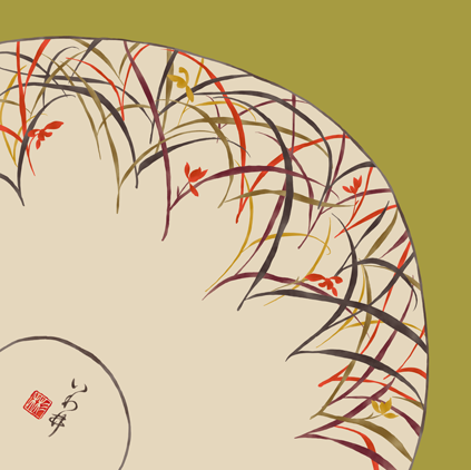 To jedwabna tkanina typu twill w 100% wykonana z jedwabiu, ręcznie barwiona w Kioto z motywem wachlarza.