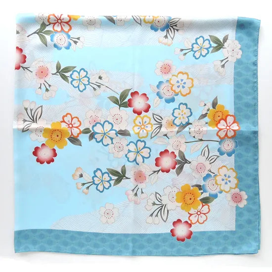 Kwiaty wiśni w jasnym odcieniu niebieskiego tworzą delikatny kontrast, nadając wzorowi bardziej stonowanego i spokojnego charakteru.