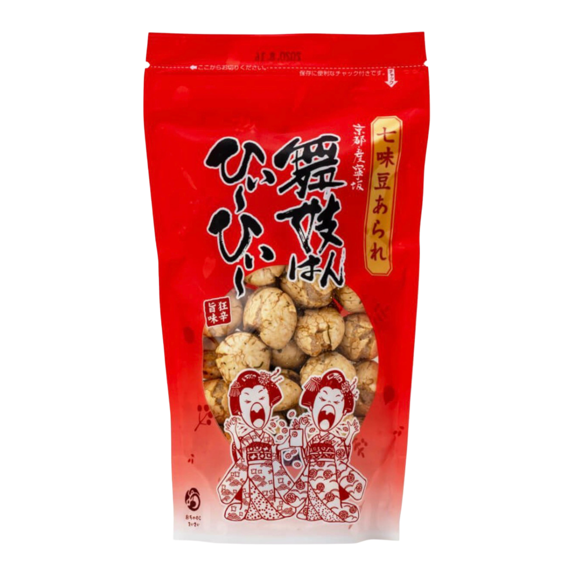 Chrupiące i pikantne prażone kulki ryżowe z nutą przyprawy shichimi „Maiko-han Hii~Hii~”.