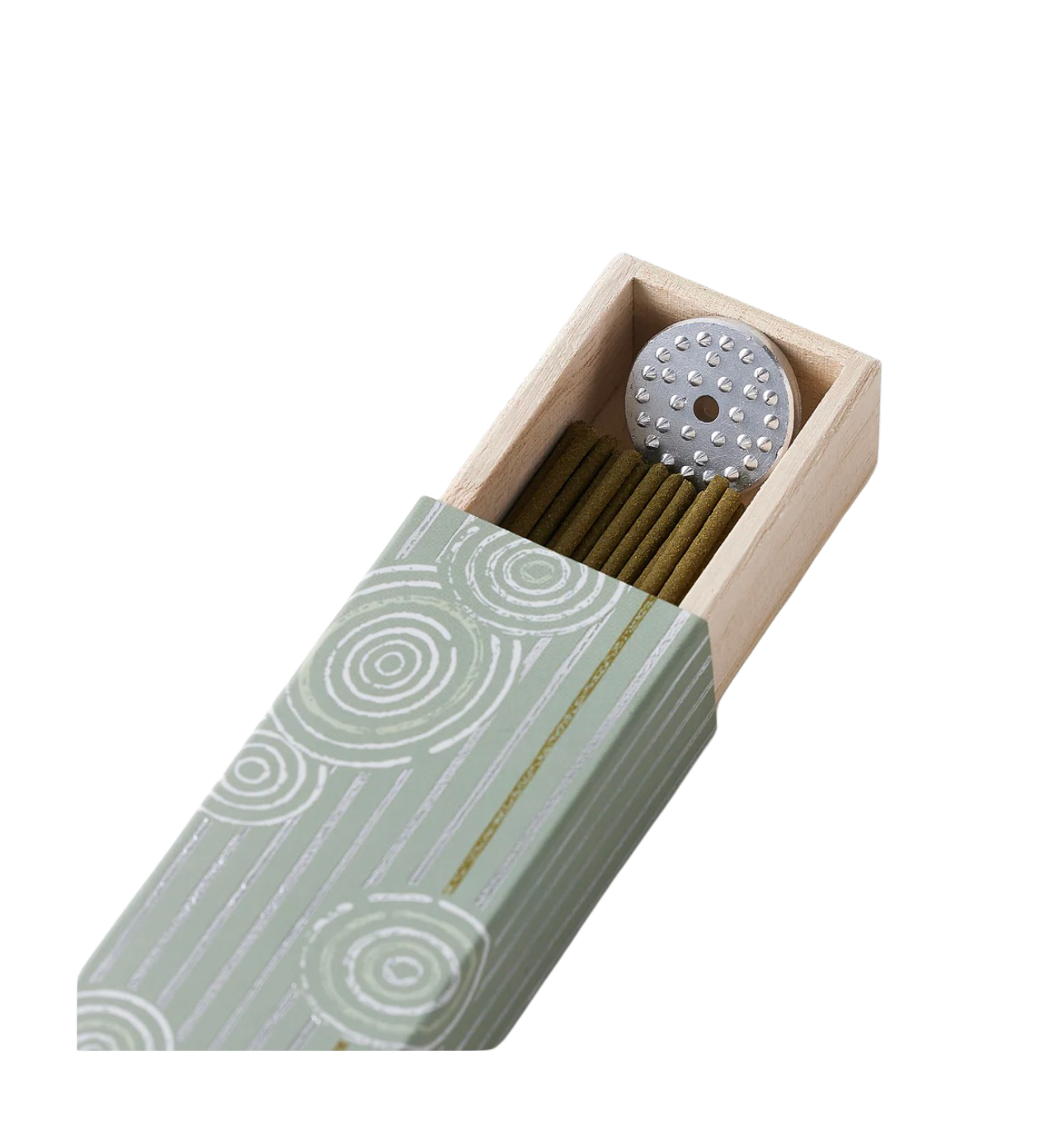 Zawartość: 40 długich patyczków oraz aluminiowa podstawka na kadzidło