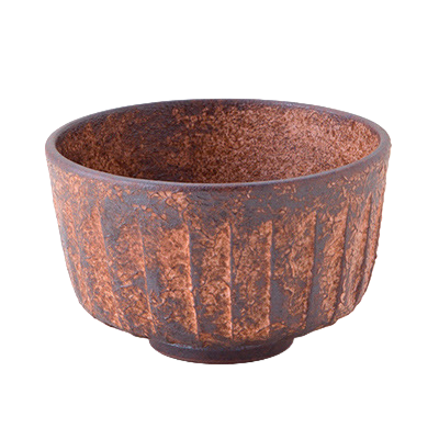 Naczynie zostało wykonane z nieglazurowanej gliny, której naturalna faktura została podkreślona odważnym, zdzieranym wzorem そぎ文様 (sogi-mon’yō). Wykończenie to nadaje szlachetną teksturę przypominającą 縄文土器 (jōmon doki) — pradawne naczynia ceramiczne z ery Jōmon, co dodaje mu eleganckiego i historycznego charakteru.