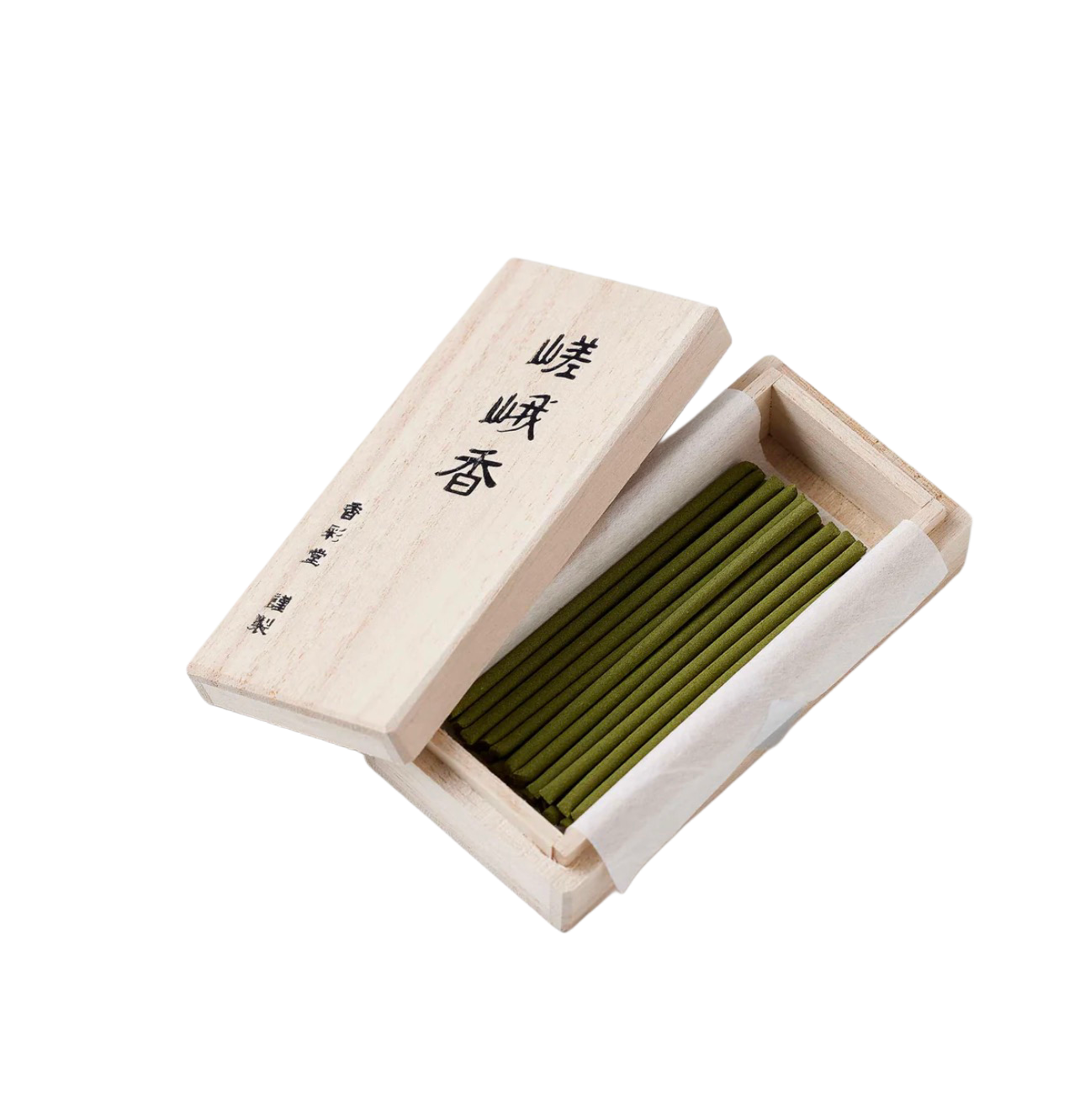 Seria "山紫水明" (Sanshisuimei) wyrażająca naturalne piękno otaczających gór i czystych rzek w Kioto, przywołując ich zapachy w postaci kadzideł. Kadzidła mają zielony kolor i reprezentują świeży zapach trawiasty, idealny do użycia w domu lub rytuałach. Patyczki są zapakowane w skrzynkę z drzewa paulowni, która zapewnia odpowiednie warunki przechowywania.