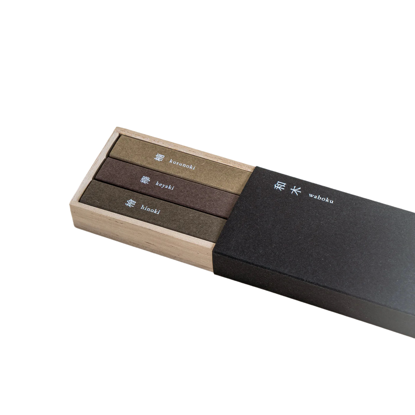 KOUSAIDO - WABOKU to zestaw wysokiej jakości japońskich kadzideł o zapachach inspirowanych naturalnym aromatem drewna. W zestawie znajdują się 3 różne rodzaje patyczków kadzidlanych, po 25 sztuk każdego rodzaju, co daje łącznie 75 patyczków.