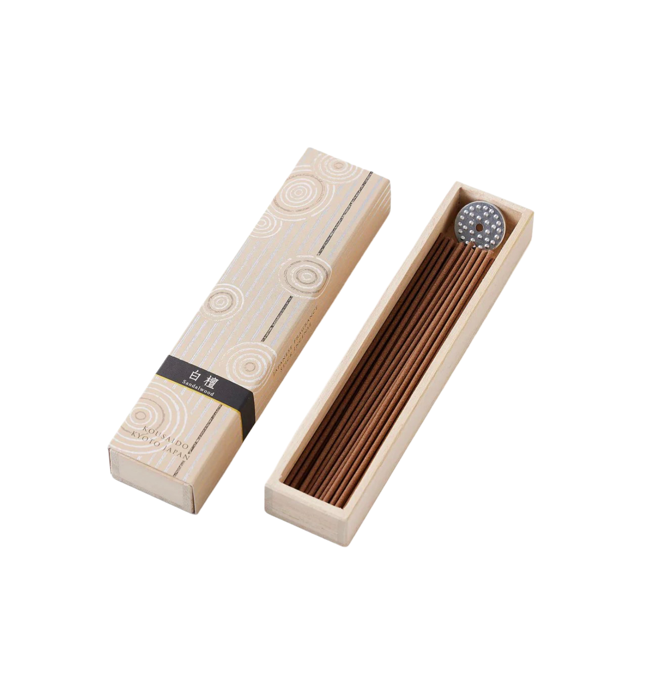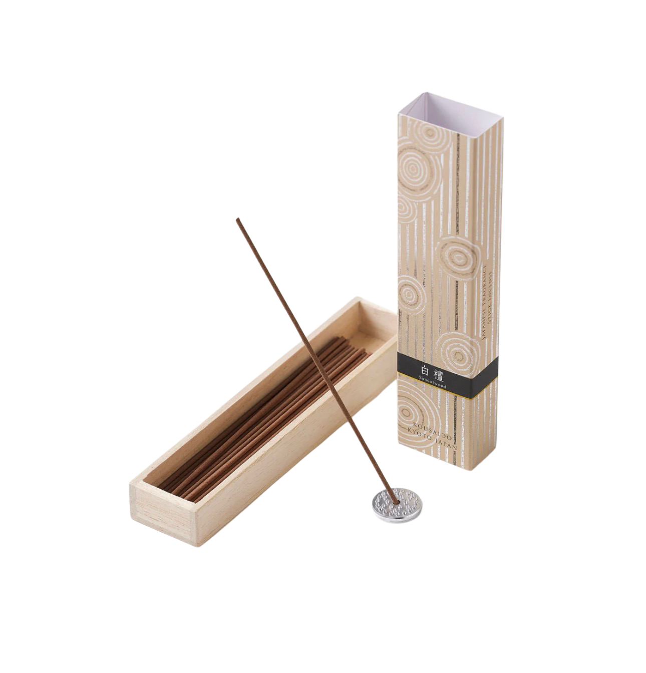 KOUSAIDO – Hyakuraku-ka Byakudan DRZEWO SANDAŁOWE (40 szt. + aluminiowa podstawka na kadzidło)