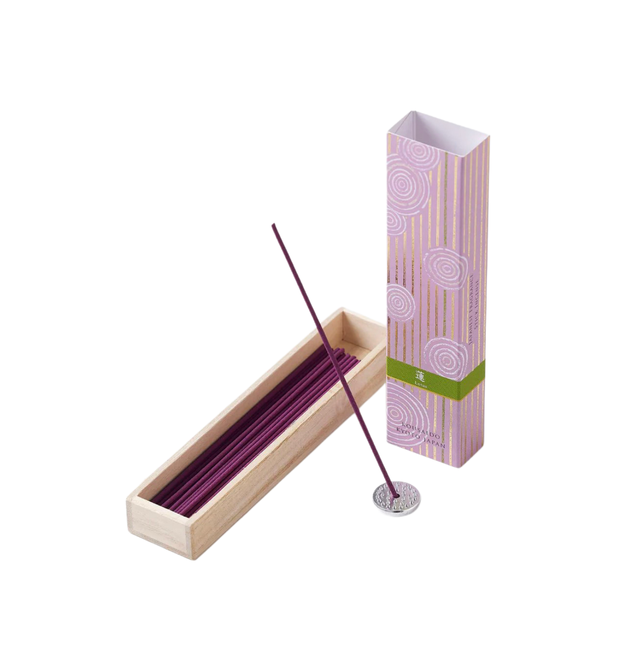 KOUSAIDO – Hyakuraku-ka Hasu LOTOS (40 szt. + aluminiowa podstawka na kadzidło)