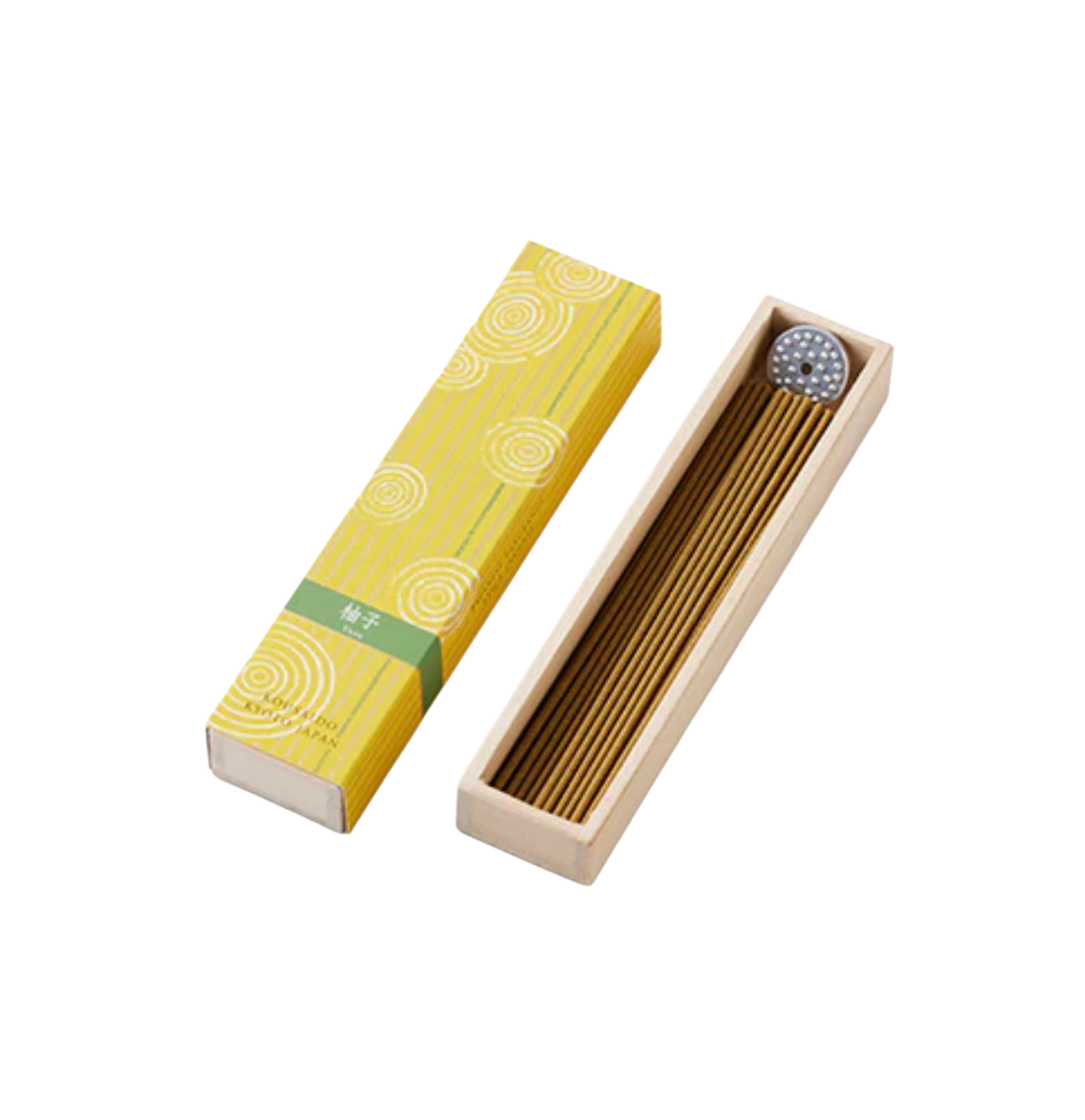 KOUSAIDO – Hyakuraku-ka Yuzu JAPOŃSKA CYTRYNA (40 szt. + aluminiowa podstawka na kadzidło)