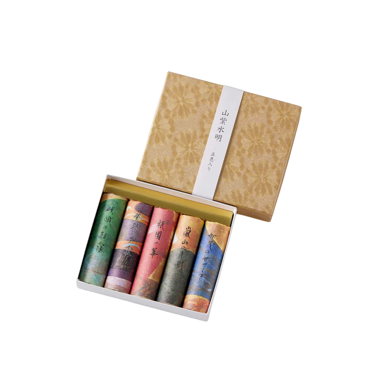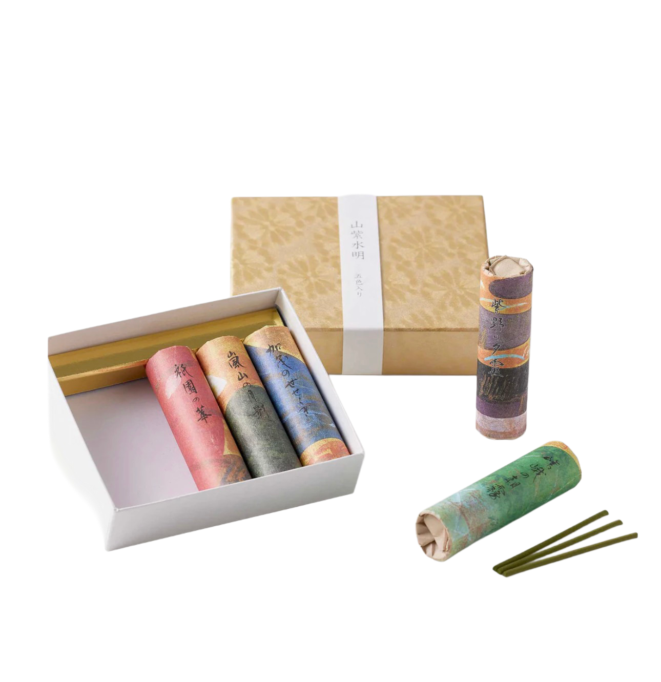 Kadzidełka z serii Sanshi Suimei przenoszą zapachem w ten poetycki świat, pozwalając poczuć atmosferę dawnego Kioto.