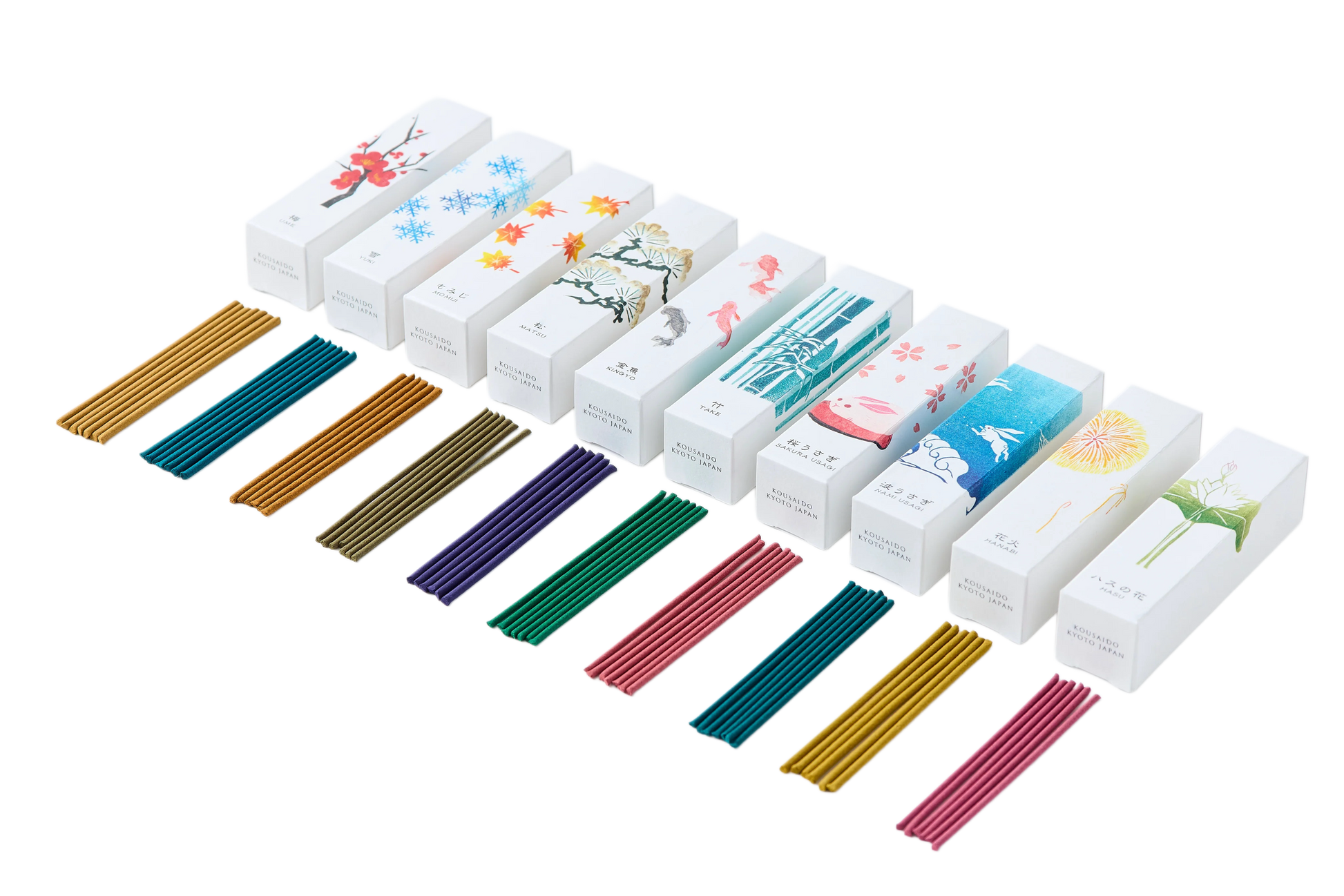 KOUSAIDO - Zestaw HANGA INCENSE (10x20 szt. + naczynie i podstawka na kadzidło)