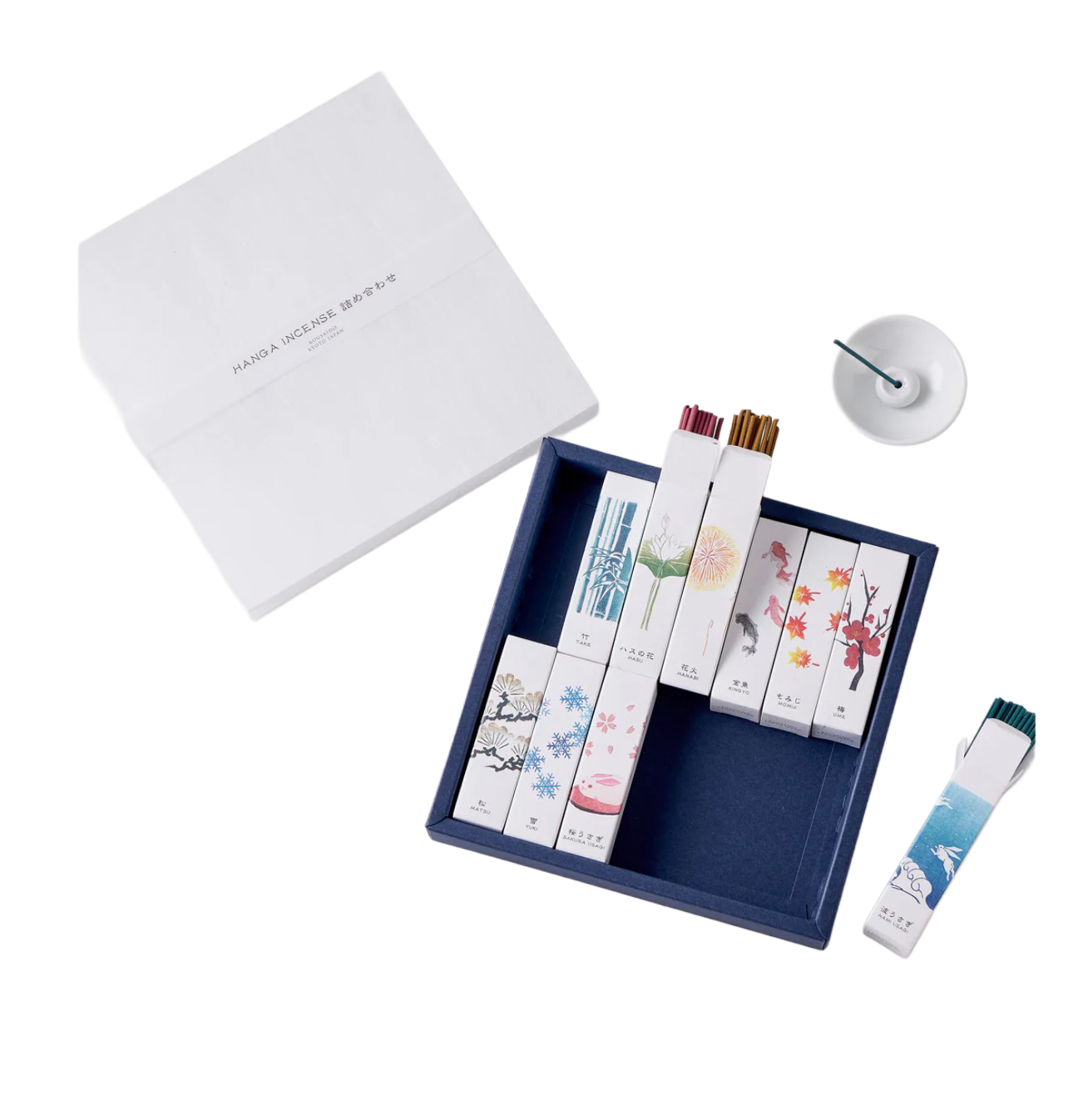 Zestaw „HANGA Incense” został zaprojektowany w stylu tradycyjnych japońskich drzeworytów (版画– hanga), oddając piękno czterech pór roku Japonii zarówno opakowaniem, jak i aromatem.
