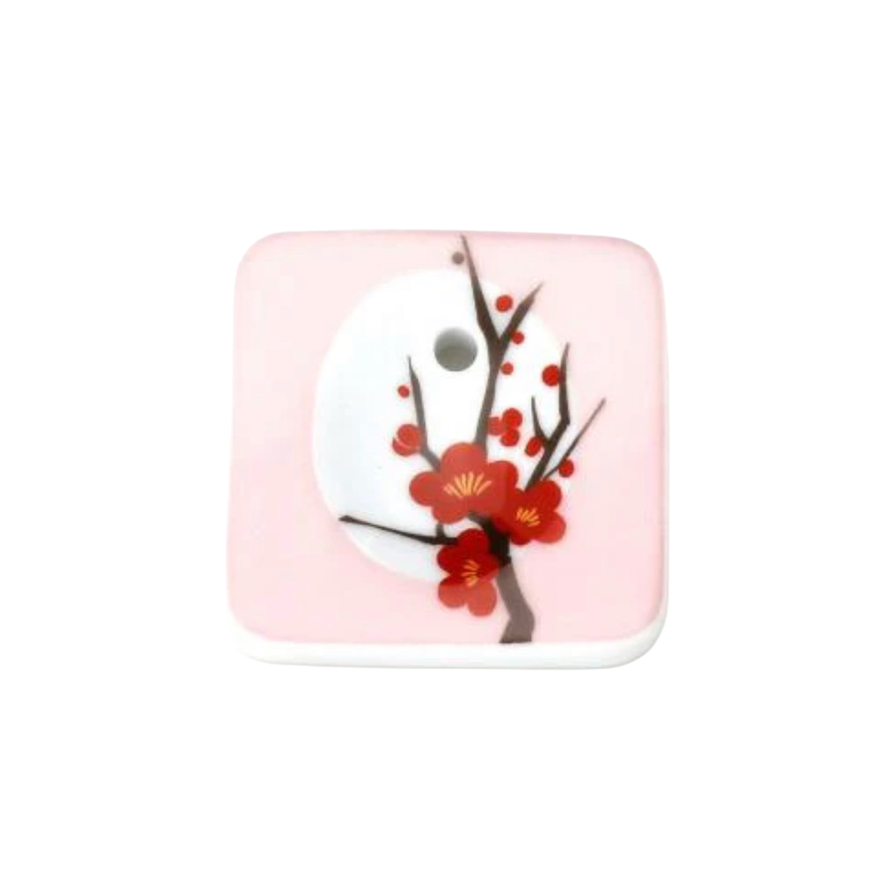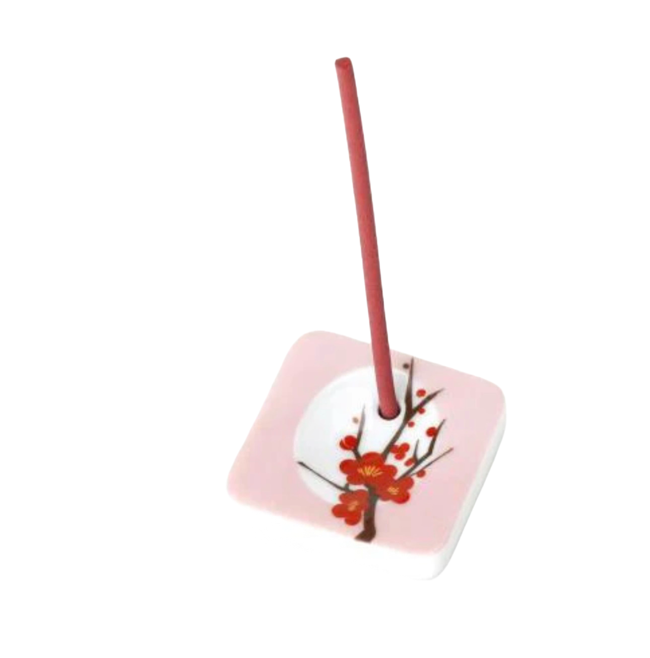 Podstawka na kadzidło z serii HANGA "Kwiat śliwy" – inspirowana pięknymi porami roku w Japonii. Można ją łączyć z kadzidłami o tej samej dekoracji. Otwarte przejście przez całą podstawkę: do użycia zaleca się podłożenie talerzyka, aby zebrać popiół.