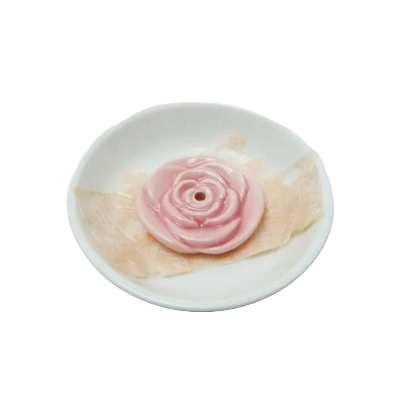 Podstawka na kadzidło w kształcie różowego kwiatu z talerzykiem