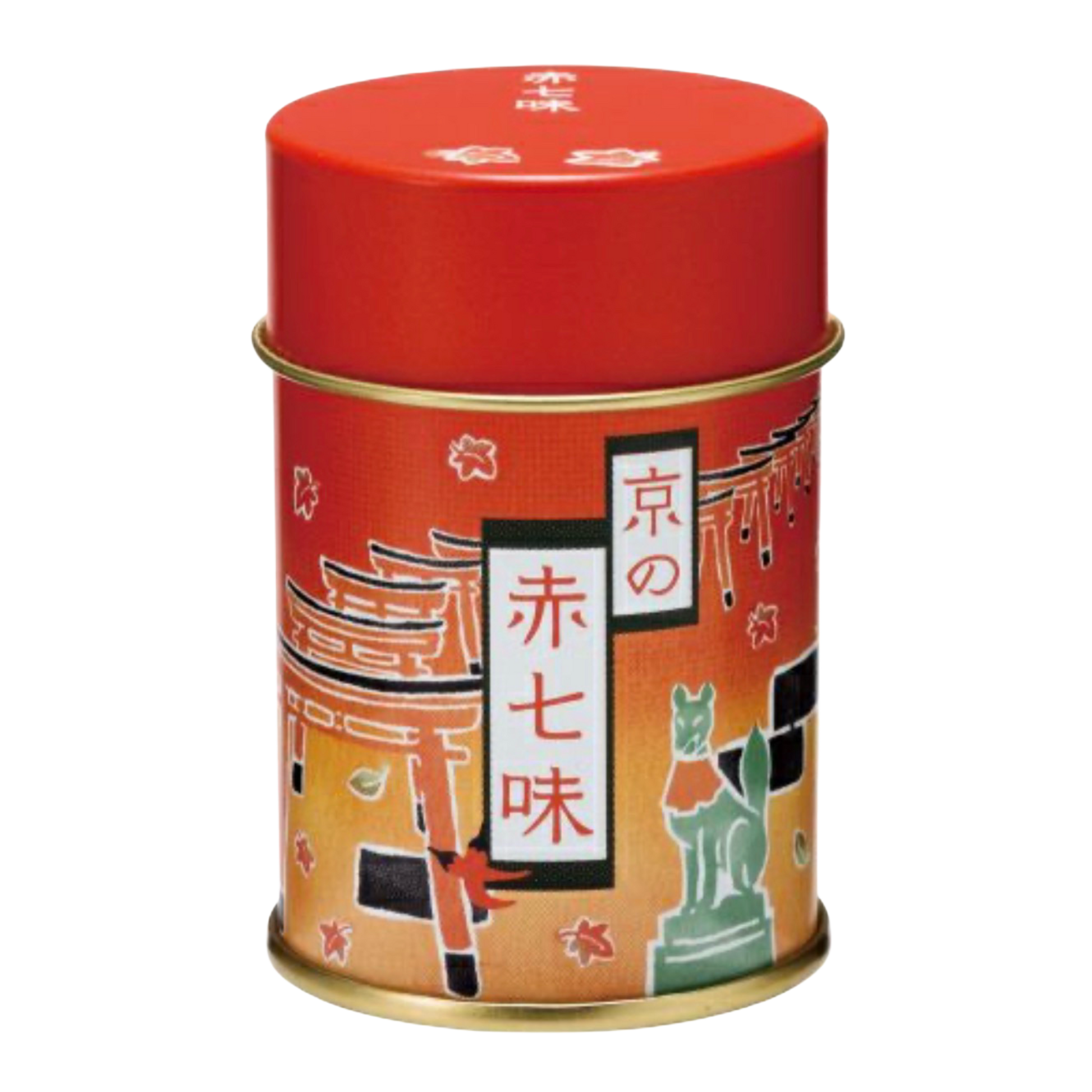 Przyprawa 京の赤七味 (Kyō no Aka Shichimi) o umiarkowanej ostrości (中辛 - chūkara), uniwersalna do różnych potraw, w puszce